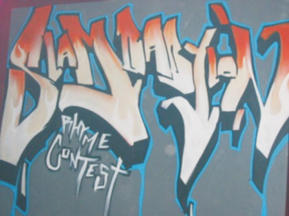 Ein ungewöhnlicher Reim-Wettbewerb und Freestyle Battle schloss sich an. Gefragt waren nicht Texte über die letzte Party oder die verflossene LebensabschnittspartnerIn, sondern solche mit gesellschaftskritischen Gehalt. Insgesamt 11 Crews, u. a. Taxi Suflaki, Revue, Die Krisenpoeten, und WSR beteiligten sich an dem inhaltsschwangeren Wettbewerb. Die Qualität der abgelieferten Texte war dabei genau so unterschiedlich, wie die Ausstrahlungen der MC`s und DJ`s auf der Bühne. Offensichtlich schien der Ansatz der Veranstaltung, feminine Einflüsse nicht nur als „schmückendes Beiwerk“ zu betrachten, zumindest hier aufzugehen. Gleich drei MicCheckerInnen nahmen am Rhyme Contest teil. Eine Frauenquote, von dem mensch sonst nur träumen kann. Ach so, einen Sieger gab es natürlich auch noch: die Krisenpoeten aus Wittenberg.
