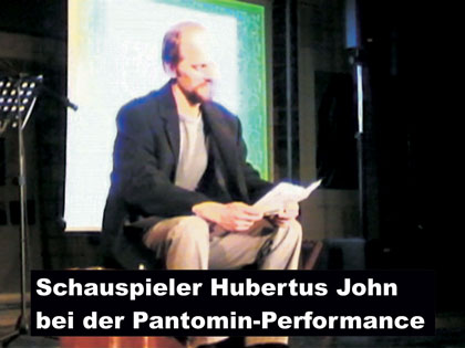 Alle Programmpunkte der Veranstaltung, nicht nur die Pausen, wurden vom Schauspieler Hubertus John mittels einer Pantomin-Performance szenisch begleitet. Ohne genau zu wissen worum es dem Künstler eigentlich geht, thematisierte er doch offensichtlich alltägliche Diskriminierungserfahrungen und rassistische Sterotype.