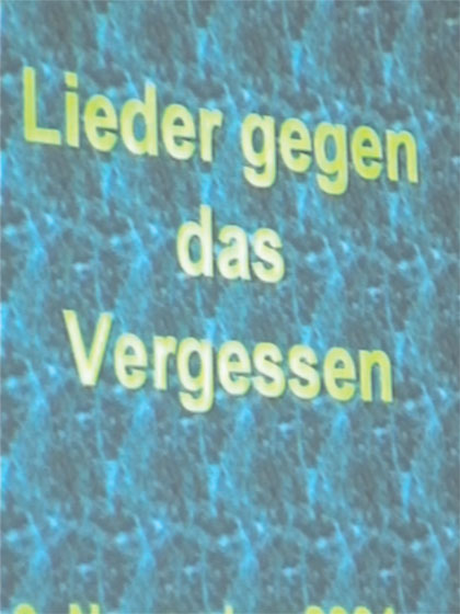 Fast 150 Besucher wohnten am 09. November 2004 der Gedenkveranstaltung „Lieder gegen das Vergessen“ in der Dessauer Marienkirche bei. Dass in der Kirche gleichzeitig eine Anne Frank-Ausstellung gezeigt wurde, war im Kontext des Anlasses begrüßenswert. Ralf Schönemann eröffnete stellvertretend für die „Interessengemeinschaft Lieder gegen das Vergessen“ das Programm und nannte dabei das diesjährige Motto: „Wohin soll ich gehen?“. In seiner Eröffnungsrede betonte er, dass der 09. November bekanntlich ein geschichtsträchtiges Datum sei. Nach einem Verweis auf den 09. November 1918, bekanntlich wurde an diesem Tag die deutsche Monarchie gestürzt, erinnerte er an die Reichpogromnacht 1938: „Wir sind heute hier um den jüdischen Opfern des Holocaust zu gedenken“. Schönemann sprach abschließend mahnend davon, dass so ein Unrecht nie wieder Menschen angetan werden dürfe.