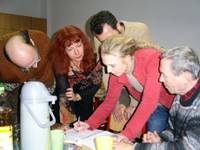 Um den Besuch der Ausstellungseröffnung für MigrantInnen zu ermöglichen, wurde ein Busshuttle (Zerbst-Roßlau-Dessau-Oranienbaum und zurück) im Voraus organisiert. Dieser wurde durch Mundpropaganda publik gemacht. Zum großen Erstaunen besuchten die Ausstellungseröffnung ca. 80 Besucher. Ein großer Teil waren MigrantInnen aus den unterschiedlichsten Ländern, welche aus Zerbst und vor allem auch aus Dessau nach Oranienbaum kamen. Es wurde ein wahres Fest der Begegnungen, zahlreiche Gespräche fanden statt, Ideen wurden gesponnen, Mut gefasst, international gekocht und gespeist, Kontakte geknüpft, aufgeklärt und angeregt, neugierig beobachtet, gelauscht, gefeiert und natürlich fotografiert. Viele der MigrantInnen waren sehr offen, neugierig und gesprächsbereit. Sie teilten immer wieder ihren Wunsch mit, an weiteren Projekten dieser Art teilnehmen zu wollen. Noch vor den Weihnachtsfeiertagen fand ein erstes Treffen mit Migranten aus Dessau im Multikulturellen Zentrum statt, um sie wissen zu lassen, dass auch wir mit ihnen arbeiten wollen.