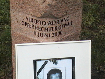 Alberto Adriano wurde am 11. Juni 2000 im Dessauer Stadtpark getreten, geschlagen, erniedrigt. Er starb, weil er eine andere Hautfarbe besaß. Er starb, weil er kein ,,Deutscher" war, weil Rassismus und Ausländerhass das unmenschliche Handeln junger Neonazis bestimmten.