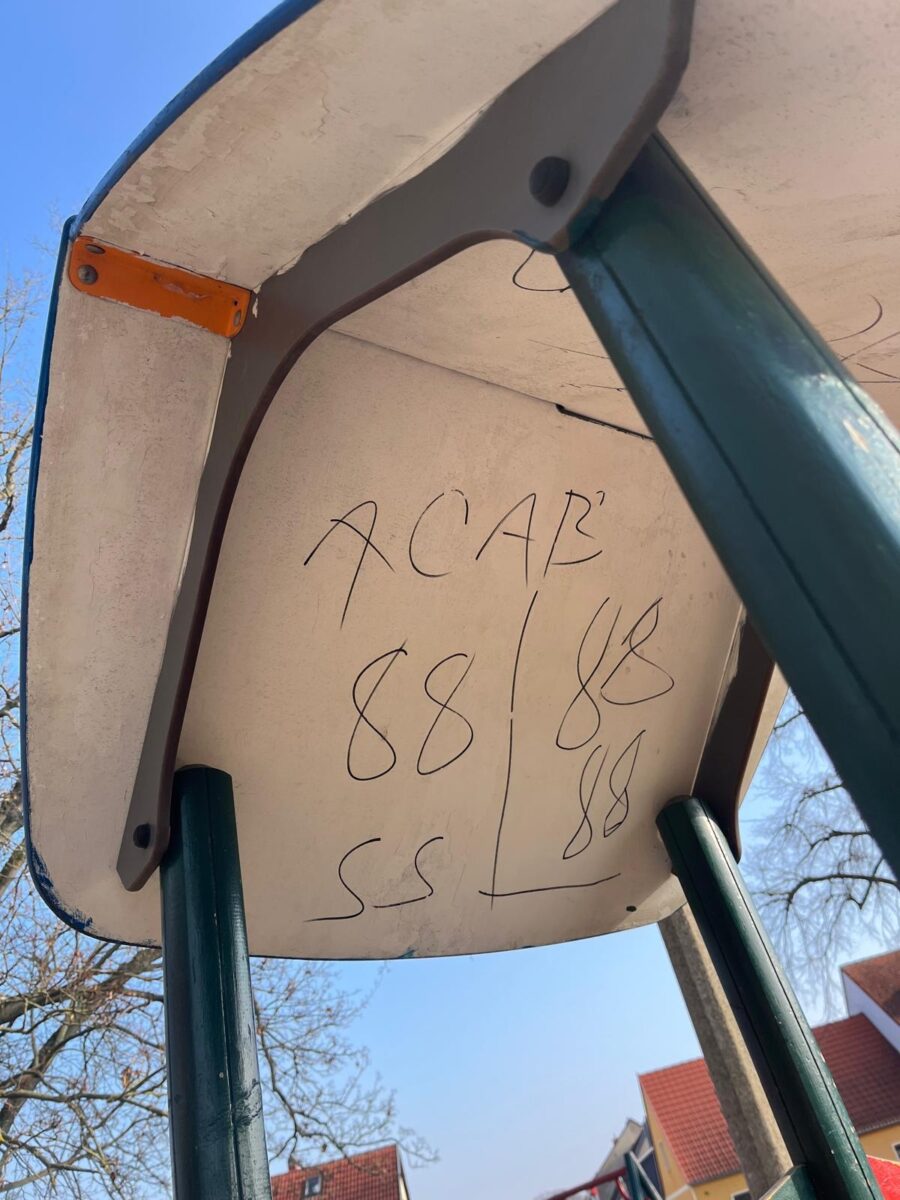Wie die Volksstimme (Ausgabe Zerbst) berichtete, registrieren die Behörden immer mehr Fälle von Verwendungen von Kennzeichen oder Symbolen verfassungsfeindlicher Organisationen nach § 86a StGB. Darunter fallen zum Beispiel das Anbringen von strafrechtlich relevanten Aufklebern oder Hakenkreuzschmierereien. In Zerbst seien demnach im Jahr 2022 10 solcher Delikte festgestellt worden, ein Jahr später waren es schon 16 und 2024 schließlich 26 Fälle. Zur Visualisierung hat die Volksstimme den Artikel u. a. mit einem Foto eines rechtsextremen Aufklebermotives mit der Aufschrift „Antifafreie Zone“ (mehr dazu hier…) bebildert. Überdies wird auch auf die Situation im Landkreis Anhalt-Bitterfeld (ABI) eingegangen. Demnach seien in der Gebietskörperschaft nach Polizeiangaben 2022 insgesamt 77 solcher Fälle aufgenommen worden, 2023 waren es schon 110 Delikte und 2024 schließlich 183. Das deckt sich auch mit den Erkenntnissen aus der Gegenpart-Onlinechronik, die für die Jahre 2023 (hier…) und 2024 (hier…) resümiert, dass in Anhalt-Bitterfeld so viele rechtsextreme Propagandadelikte identifiziert worden, wie im Landkreis Wittenberg und der kreisfreien Stadt Dessau-Roßlau zusammen. Ein Schwerpunkt in ABI stellt dabei Aken dar. Dort ist seit eineinhalb Jahren eine regelrechte Serie von rechtsextremen Propagandadelikten festzustellen, die vor allem auf das Konto einer örtlichen, rechtsextremen Jugendgruppe geht (mehr dazu hier… und hier…).