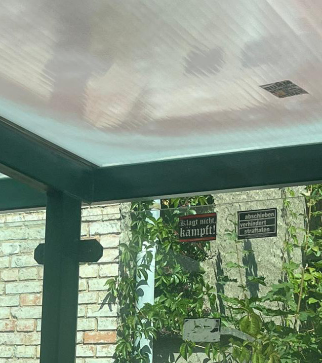 An der Bushaltestelle Neu-Tornau werden zwei neonazistische Aufkleber festgestellt. Das Motiv „Klagt nicht, kämpft!“ kann nur als Handlungsaufforderung mit appellativen Charakter der extrem rechten Szene verstanden werden, auch mit Gewalt politische Ziele durchzusetzen. Zudem ist die Ikonographie des Aufkleber durch die Farbkombination schwarz/weiß/rot geprägt, die in der Szene ideologisch aufgeladen ist und als Erkennungsmerkmal nach Innen und Außen fungiert. Das Motiv ist u. a. beim neonazistischen Versandhandel „Druck 88“ zu beziehen. Der Aufkleber mit der Parole „Abschieben verhindert Straftaten“ unterstellt Menschen mit Migrationsbiographie quasi pauschal und ohne Differenzierungen in einem rassistischen Subtext, kriminell zu sein.