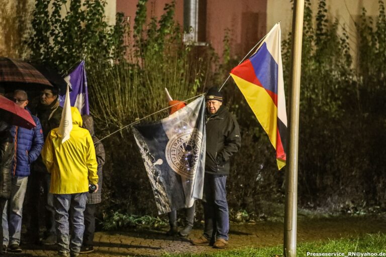Die hiesige Querdenken-Szene führt eine Montagsmahnwache in der Dessauer Innenstadt durch. Dabei sind prominent Fahnen des rechtsextremen „Compact“-Magazins um dessen Herausgeber Jürgen Elsässer zu sehen.