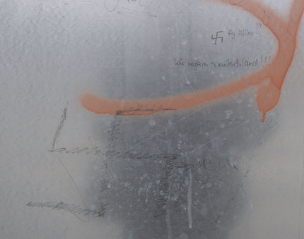Im Bereich der Haltestelle Lindenstrasse (Stadtteil Dessau-Alten) stellte ein engagierter Antifaschist mehrere rechtsextreme und NS-glorifizierende Graffities fest. Darunter das nach Paragraph 86a STGB (Verwendung verfassungsfeindlicher Symbole) verbotene Hakenkreuz und den ebenfalls inkriminierten sogenannten deutschen Gruß "Heil Hitler". Darüber hinaus wird der Führer des nationalsozialistischen Terrorregimes bejubelt und gar ein "Nachfolger" gesucht. Wie lange sich die Parolen schon dort befinden, ist indes nicht bekannt.