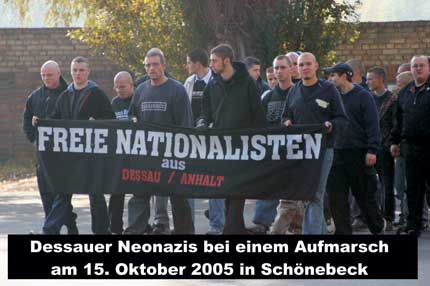 Unter dem Motto "Schaut nicht weg - Greift ein! ... Darf keine hohle Phrase sein!", nahmen ca. 300 Menschen an einer von antifaschistischen Gruppen organisierten Demonstration teil. Anlass der Aktion war ein rechtsextremer Übergriff auf einen 12jährigen Jungen mit äthiopischen Migrationshintergrund im nahegelegenen Pömmelte (mehr dazu hier...). Neonazis aus dem Spektrum der sogenannten Kameradschaften hatten zeitgleich einen Aufmarsch unter dem realitätsverfälschenden Slogan "Gegen Medienhetze - sie sagen Nazis und meinen uns Deutsche" angemeldet, an dem ca. 200 Rechtsextremisten teilnahmen. Die Antifa-Demo wurde aus einem leerstehenden Haus heraus, von Neonazis mittels Wurfgeschossen angegriffen. Laut Augenzeugen handelte es sich dabei um Rauchbomben und Farbbeuteln. Die Polizei konnte die Täter nach eigenen Angaben nicht ermitteln. Zu einem weiteren Übergriff kam es, als ein junger Mann, der sich ca. 200 Meter von der antirassistischen Demo entfernt hatte, von 5-6 Neonazis körperlich attackiert wurde. In Folge des Überfalls verlor der Geschädigte zwei Schneidezähne.