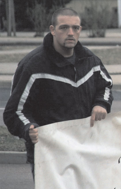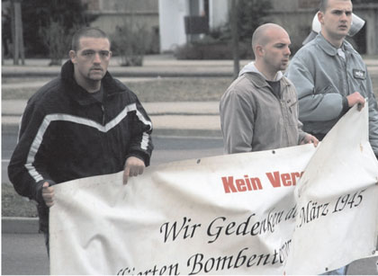 Rechtsextremist Steffen M. bei einem Neonaziaufmarsch am 12. März 2005 in Dessau