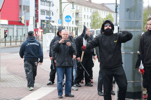 Agressive Neonazis treffen verspätet am Kundgebungsort ein