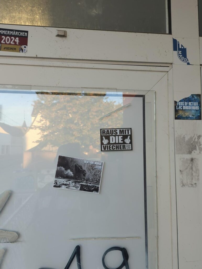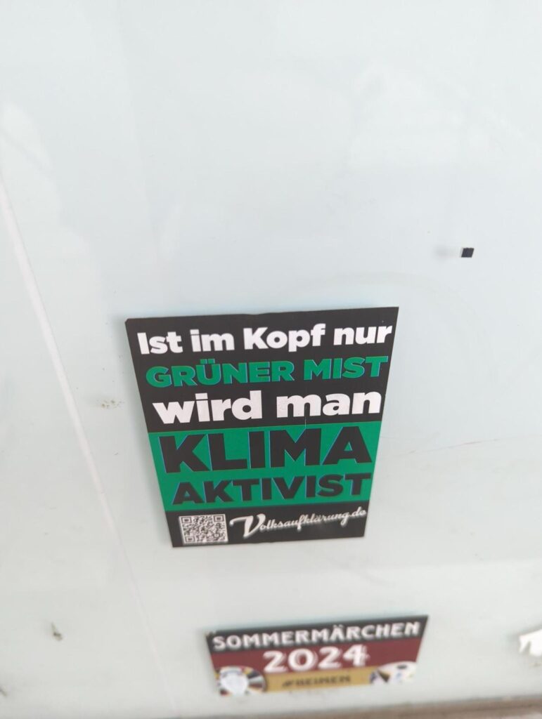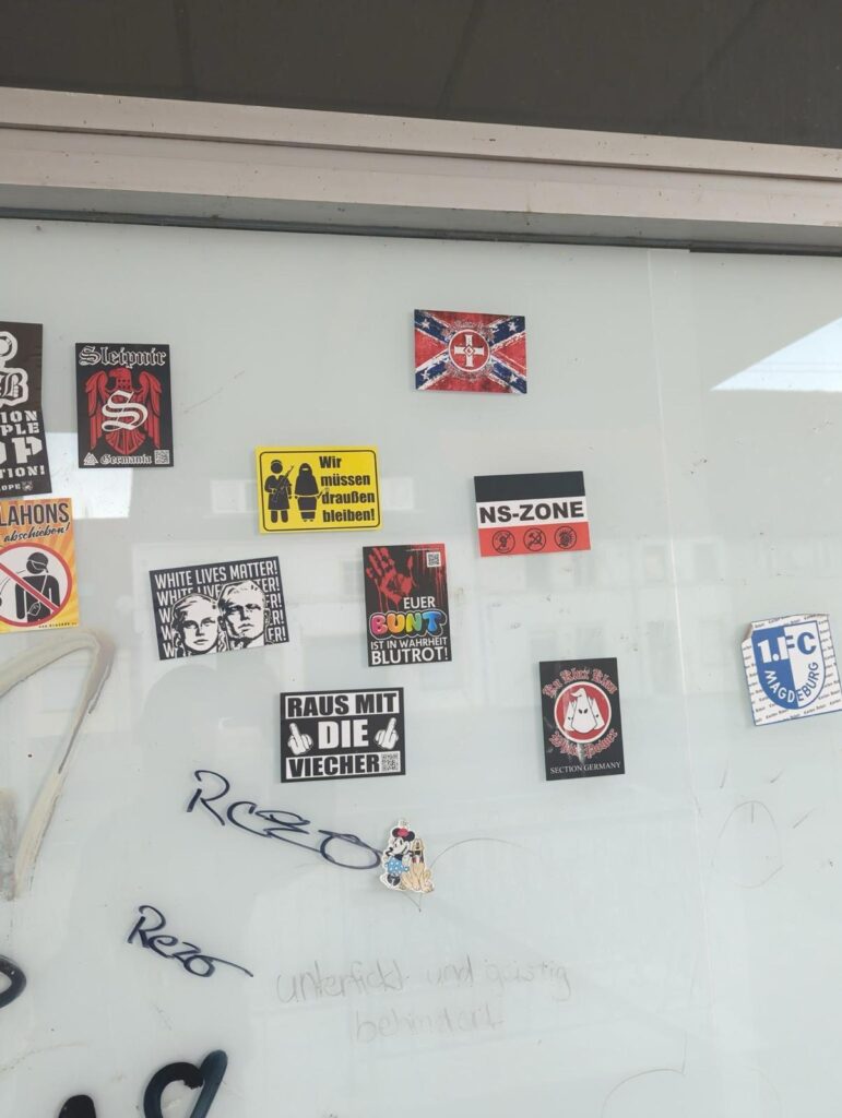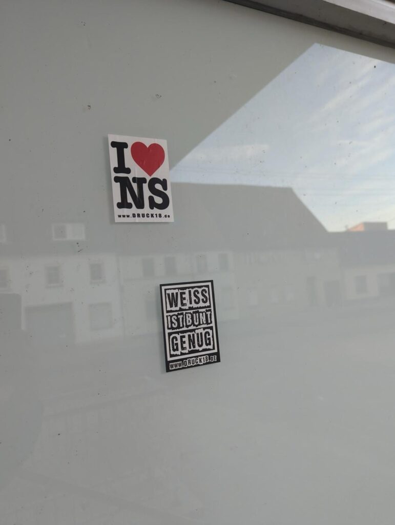 An der ehemaligen NP-Filiale in der Akener Bärstraße wird ein ganzes Konvolut neonazistischer Aufkleber entdeckt, das die ganze, menschenverachtende Bandbreite der extrem rechten Szene fast schon idealtypisch aufschlüsselt. Am gleichen Ort wurde übrigens im Mai 2024 die strafrechtlich relevante und antisemitische Parole „Juden töten“ identifiziert (mehr dazu hier…). Unter den Aufklebern fand sich die rassistische Parole „Raus mit die Viecher“, eine Quasi-Entmenschlichung für Menschen mit Migrationsbiographie, das Bezug auf die rechtsextreme Familie Ritter aus Köthen nimmt, die durch TV-Reportagen bekannt wurde. Das Motiv „Ku Klux Klan – White Power“ glorifiziert den rassistischen, antisemitischen und gewalttätigen Geheimbund in den USA . Der Aufkleber mit der rassistischen Aufschrift „White Lives Matter“ ist nicht nur als Diskreditierung und Verballhornung der US-amerikanischen Bewegung „Black Lives Matter“ zu verstehen, sondern erinnert in der verwendeten Bildsprache und Ikonographie an Vorbilder aus dem historischen Nationalsozialismus. Daran dockt auch das Motiv „I Love NS“ an, eine eindeutigere, positive Bezugnahme zu den NS-Verbrechen ist kaum möglich, das gilt auch für die Aufkleber „NS-Zone“ (mehr dazu hier…). Der ethnozentristische und rassistische Gehalt kommt in dem Spruch „Weiß ist bunt genug“ ebenso zum Ausdruck, wie in der Parole „Euer Bunt ist in Wahrheit Blutrot“, wobei bei letzterem noch die extrem rechte und bei Verschwörungsideologen aller Couleur beliebte Opfererzählung vom „Großen Austausch“ (Great Reset) (mehr dazu hier…) hinzukommt. Der Aufkleber „Sleipnir Germania“ macht Werbung für eine der erfolgreichsten, neonazistischen Rechtsrockbands (mehr dazu hier…) Der Aufkleber mit der rassistischen Parole „Wir müssen draußen bleiben“ lehnt sich bewusst an das ursprünglich einmal für Hunde gedachte Begehungsverbot (u. a. in Geschäften) an und zeigt die ganze Menschenverachtung der extrem rechten Szene. Verstärkt wird dies durch die bildsprachliche Untermalung mit einer Frau in einer stilisierten Burka und einer mutmaßlich dargestellten, bewaffneten und islamistischen Terroristin. Das Motiv ist u. a. auf der neonazistischen Plattform „defend europe“ zu beziehen. Dort gibt es zahlreiche, NS-relativierende oder gewaltverherrlichende Devotionalen und Kleidungsstücke. Komplettiert wird die braune Galerie des Grauens mit den Motiven „Ku Klux Klan – Weiße Macht“, der zynischen Botschaft „Syrien ist frei. Jetzt geht alle Heim“ und dem rassistischen Ausspruch „One Nation. One People. Stop Immigration!“, der Aussage „Ist im Kopf nur grüner Mist, wird man Klimaaktivist“, die implizit auch den menschengemachten Klimawandel leugnet und dem rassistischen Aufkleber „Thank You for not Mixing“ (mehr dazu hier…). Dem Aufkleber „Talahons abschieben“ ist in Sprache und Ikonographie sein rassistischer Gehalt schon anzusehen. Bemerkenswert ist indes die rechtsextreme Aneignung dieses Begriffs. „Talahons“ ging eigentlich aus einem Trend auf der Plattform „TikTok“ hervor und kam 2024 sogar in die Endauswahl zum „Jugendwort des Jahres“. Der TikTok-Trend bestand vor allem darin, dass sich männliche Jugendliche mit Migrationsbiographie, durchaus nicht immer erstgemeint, im Macho- und Gangsterpossen oder beim Schattenboxen und Liegestützten in westdeutschen Großstädten filmten. Einige Medien, ob berechtigt oder nicht, rezipierten diesen Trend dann schließlich als in Teilen frauenfeindlich und sexistisch. Dieses Narrativ, freilich ohne die notwendige Differenzierung, übernahmen schließlich Rechtsextremisten und versuchen seitdem nicht ohne Erfolg, den Trend und den Begriff für eine jugendliche Zielgruppe popkulturell-rassistisch aufzuladen.