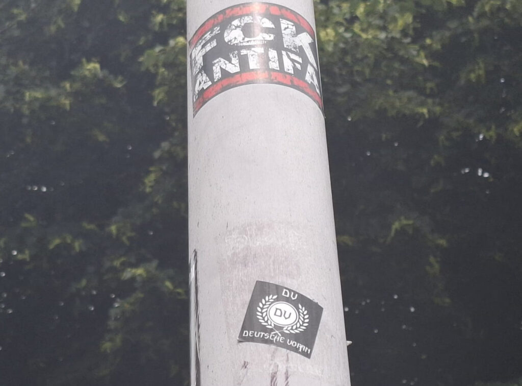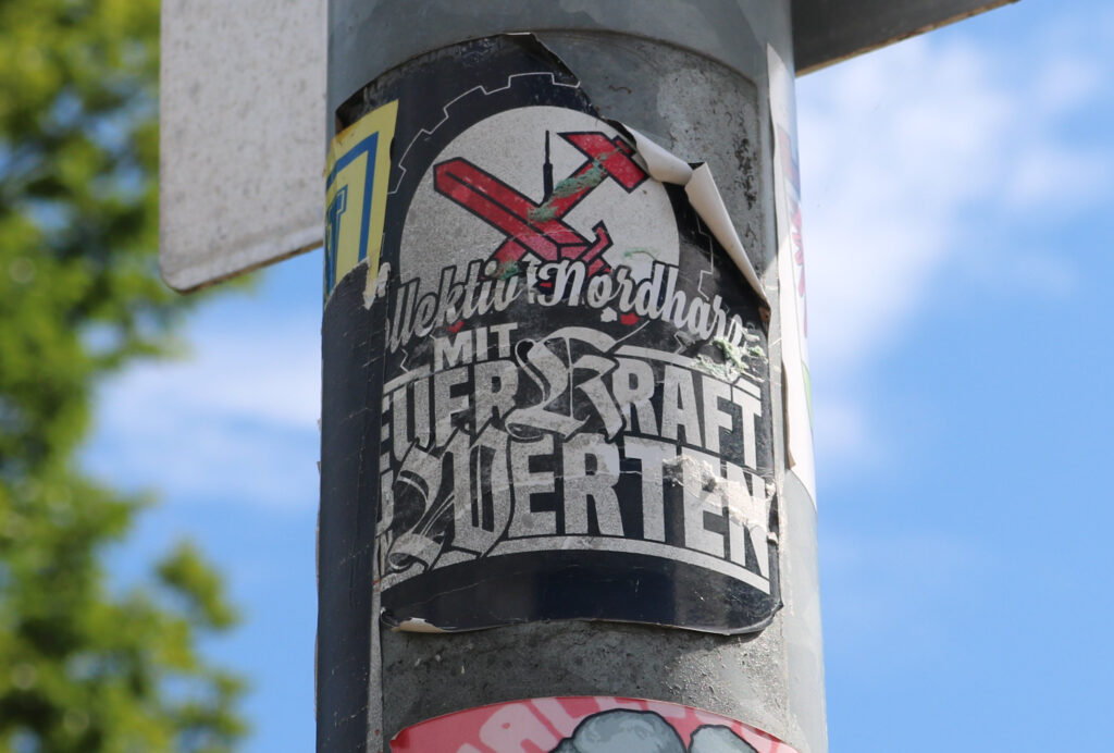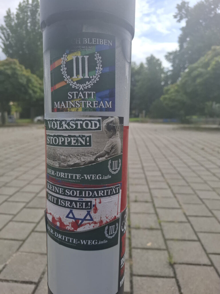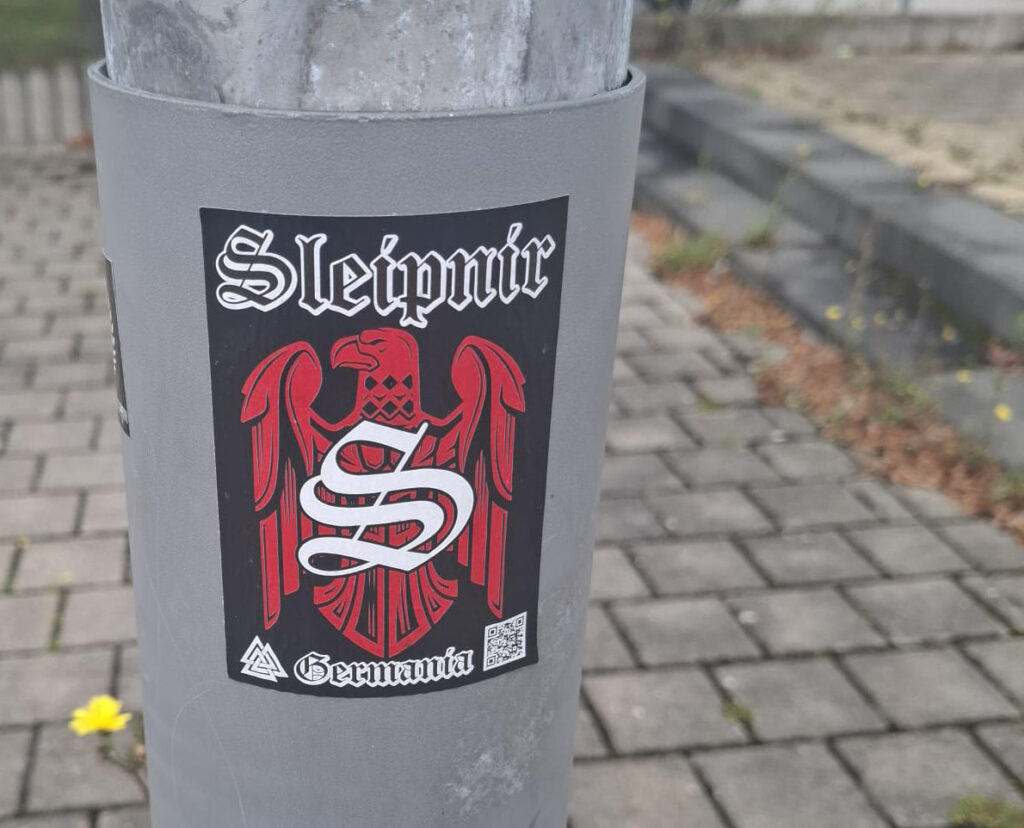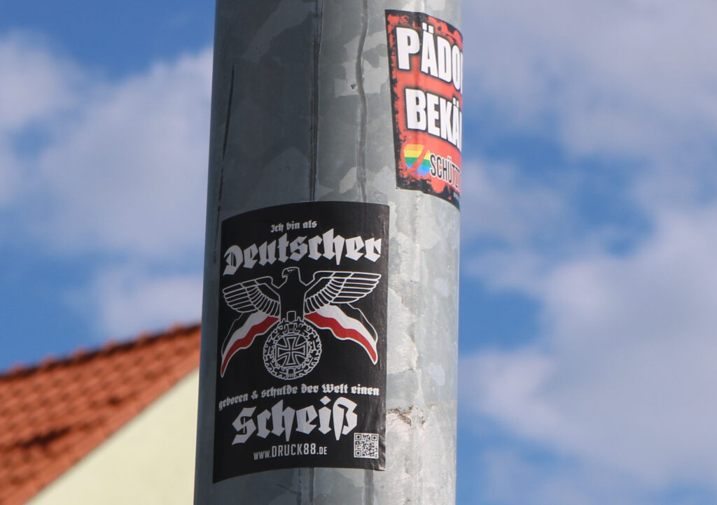 Neonazistische Aufkleber und Graffitis am Rande von Demokratiefest