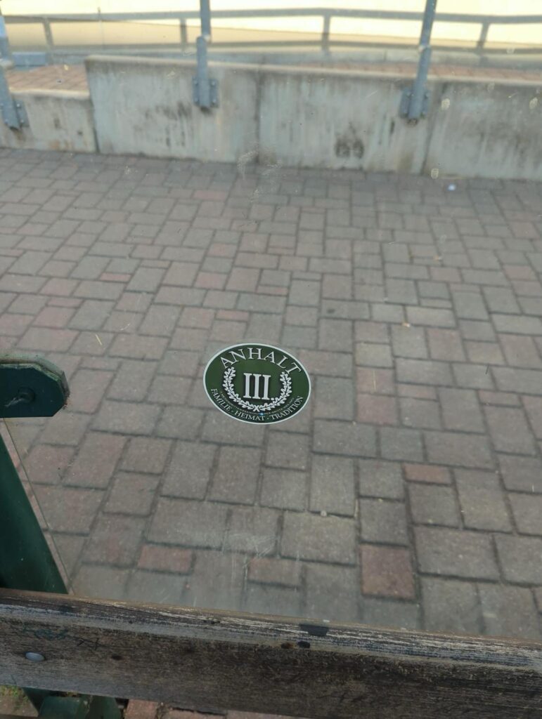 In der Köthener Straße in Aken wird an einer Bushaltestelle ein Aufkleber der neonazistischen Kleinstpartei der III. Weg festgestellt, der auf dem im Juli 2024 gegründeten „Stützpunkt Anhalt“ (mehr dazu hier…) der Rechtsextremisten hinweist. Dieses Motiv wurde in der Kleinstadt an der Elbe indes schon einmal identifiziert (mehr dazu hier…).
