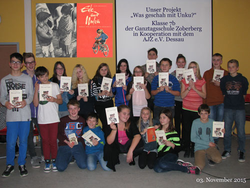 Mit dem Schuljahr 2015/16 starteten die Lehrerin Heike Müller und die Sozialpädagogin Jana Müller das Langzeitprojekt „Was geschah mit Unku?“ mit Schüler*innen der damaligen 7b (jetzt 8b) der Ganztagsschule Zoberberg. Im Mittelpunkt des ersten Projektjahres stand die Kindheit von Unku (Erna Lauenburger) Ende der 1920-er Jahre in Berlin. Nachdem die Jugendlichen den Roman „Ede und Unku“ gelesen und sich mit Vorurteilen gegenüber Sinti und Roma auseinandergesetzt hatten, entwickelten sie Texte und Szenen, um die Geschichte filmisch erzählen zu können.