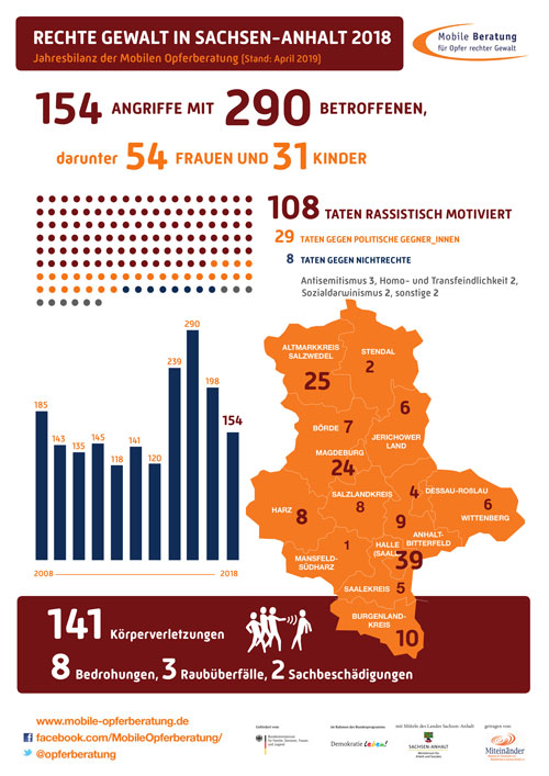 Mobile Opferberatung stellt Jahresbilanz 2018 vor: 154 politisch rechts motivierte Gewalttaten in Sachsen-Anhalt