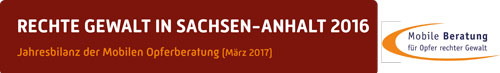 265 politisch rechts motivierte Gewalttaten mit 401 direkt davon betroffenen Menschen hat die Mobile Opfer-beratung für das Jahr 2016 in Sachsen-Anhalt registriert. Damit hat sich die Zahl der bekannt gewordenen politisch rechts und rassistisch motivierten Angriffe im Vergleich zu 2015 erneut erhöht. So hatte die Mobile Opferberatung im März 2016 für das Jahr 2015 217 Angriffe bekannt gegeben und damit eine Verdopplung im Vergleich zu 2014 konstatieren müssen.