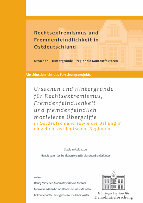 Fremdenfeindlichkeit und Rechtsextremismus sind ernste Bedrohungen für unsere Gesellschaft. Das Göttinger Institut für Demokratieforschung hat im Auftrag der Beauftragten der Bundesregierung für die neuen Bundesländer im Rahmen einer soeben erschienenen Studie Kontextfaktoren für die Ausbildung rechtsextremer Einstellungsmuster in Ostdeutschland untersucht – von großer Bedeutung für die Ausbreitung rechtsextremer Einstellungen ist insbesondere das Verhalten von Politik und Behörden.