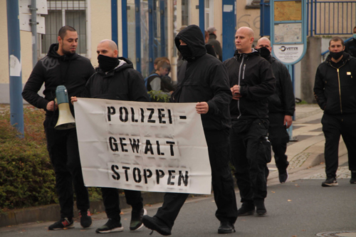 Unter dem Motto „Gegen Polizeigewalt“ bezogen Sie sich auf eine Polizeikontrolle vom April diesen Jahres, die mit einer Anzeige gegen einen Bundespolizisten wegen „Körperverletzung im Amt“ endete.