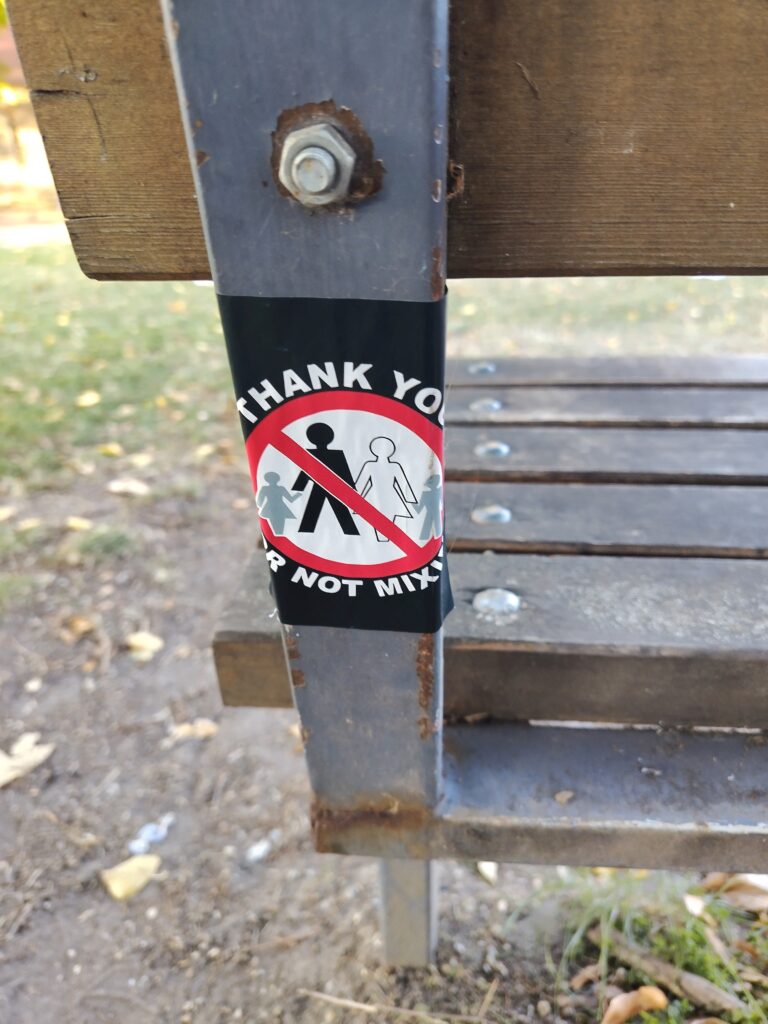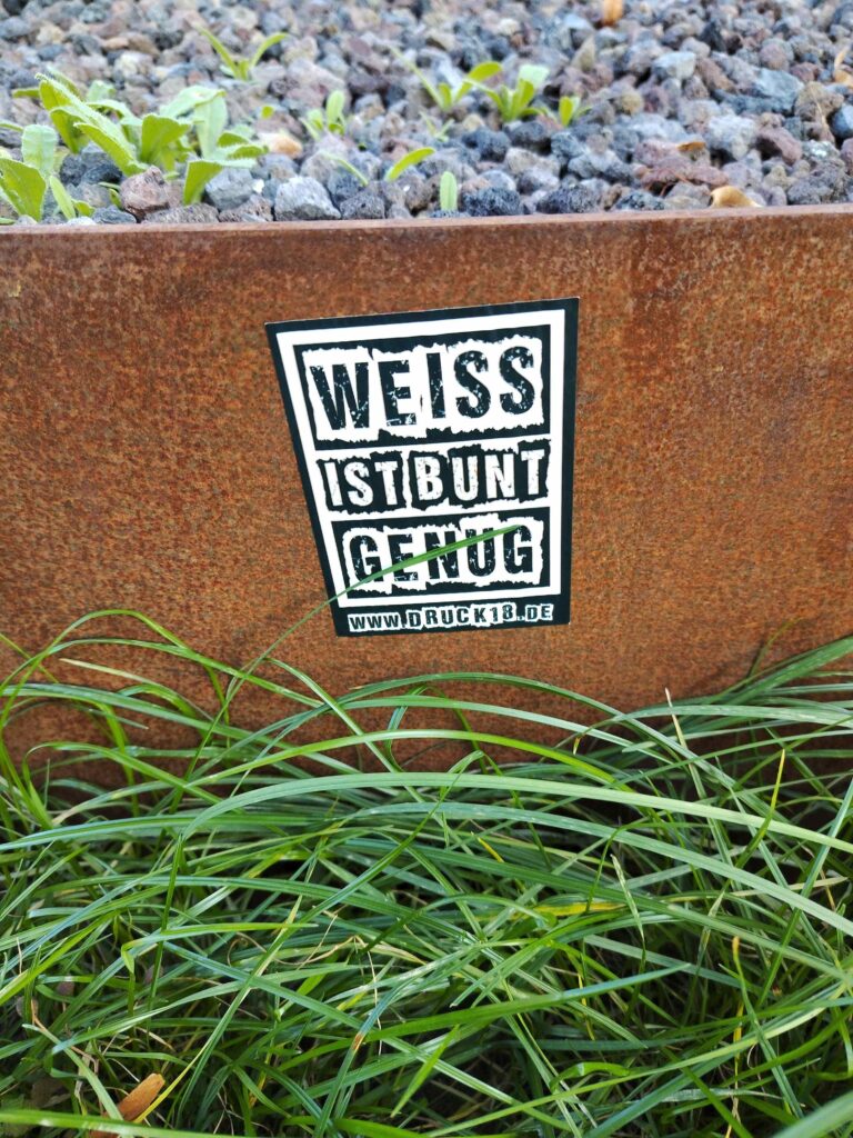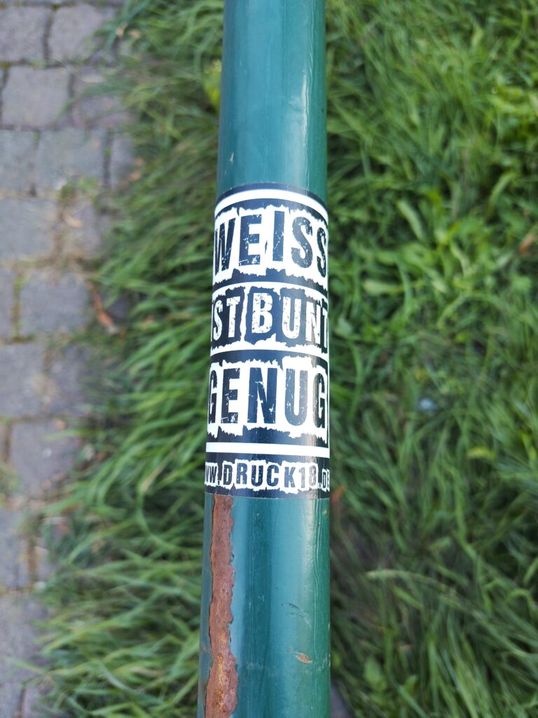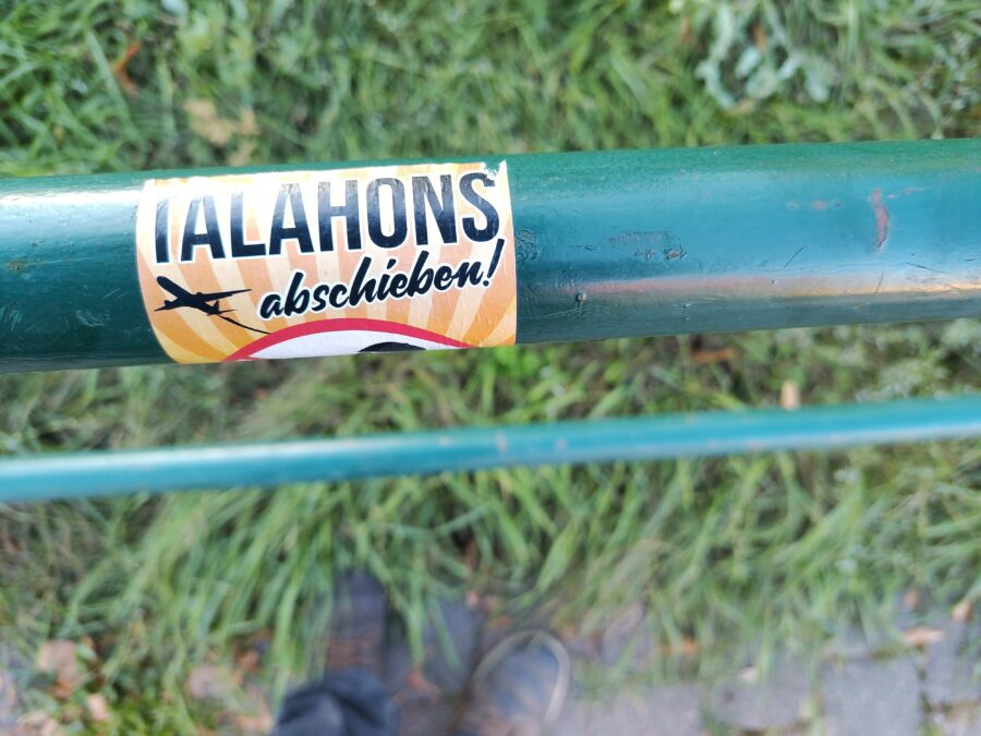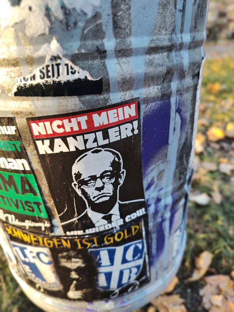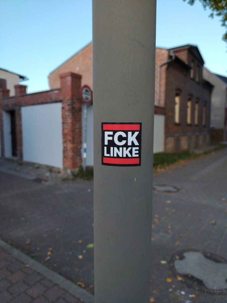 Im Umfeld des Akener Nikolaiplatzes wurde auf einem Spielplatz ein ganzes Konvolut von rechtsextremen Aufkleber an zusammen 10 Klebeorten entdeckt. So steht das Motiv „Ku Klux Klan – White Power“ für eine Glorifizierung des rassistischen, antisemitischen und gewalttätigen Geheimbundes aus den USA. Der Aufkleber mit der rassistischen Aufschrift „White Lives Matter“ ist nicht nur als Diskreditierung und Verballhornung der US-amerikanischen Bewegung „Black Lives Matter“ zu verstehen, sondern erinnert in der verwendeten Bildsprache und Ikonographie an Vorlagen aus dem historischen Nationalsozialismus. Motive wie „Weiß ist bunt genug“ oder die Parole „Euer Bunt ist in Wahrheit Blutrot“ verfügen über einen offensichtlich ethnozentrischen wie rassistischen Gehalt, wobei bei letzterem noch die extrem rechte und bei Verschwörungsideologen aller Couleur beliebte Opfererzählung vom „Großen Austausch“ (Great Reset) (mehr dazu hier…) hinzukommt. Die klimaleugnende Erzählung der Parole „Ist im Kopf nur grüner Mist, wird man Klimaaktivist“ und der rassistische Aufkleber „Thank You for not Mixing“ (mehr dazu hier…) ergänzen das braune Konvolut ebenso, wie der Aufkleber „Nicht mein Kanzler! Nie wieder CDU!“, der das Konterfei von Friedrich Merz zeigt. Hierbei geht es nicht nur darum, das Engagement demokratischer Parteien pauschal verächtlich zu machen, sondern im Subtext die Systemfrage aus einer neonazistischen Perspektive zu stellen. Denn die extrem rechte Szene will in letzter Konsequenz den demokratischen Rechtsstaat abschaffen und durch ein autoritäres Regime nach dem Vorbild der nationalsozialistischen Herrschaft ersetzen. Dem Aufkleber „Talahons abschieben“ ist der rassistische Gehalt schon in seiner Ikonographie anzusehen. Bemerkenswert ist indes die rechtsextreme Aneignung dieses Begriffs. „Talahons“ ging eigentlich aus einem Trend auf der Plattform „TikTok“ hervor und kam 2024 sogar in die Endauswahl zum „Jugendwort des Jahres“. Der TikTok-Trend bestand vor allem darin, dass sich männliche Jugendliche mit Migrationsbiographie, durchaus nicht immer erstgemeint, im Macho- und Gangsterpossen oder beim Schattenboxen und Liegestützten in westdeutschen Großstädten filmten. Einige Medien, ob berechtigt oder nicht, rezipierten diesen Trend dann schließlich als in Teilen frauenfeindlich und sexistisch. Dieses Narrativ, freilich ohne die notwendige Differenzierung, übernahmen schließlich Rechtsextremisten und versuchen seit her nicht ohne Erfolg, den Trend und den Begriff für eine jugendliche Zielgruppe popkulturell-rassistisch aufzuladen.