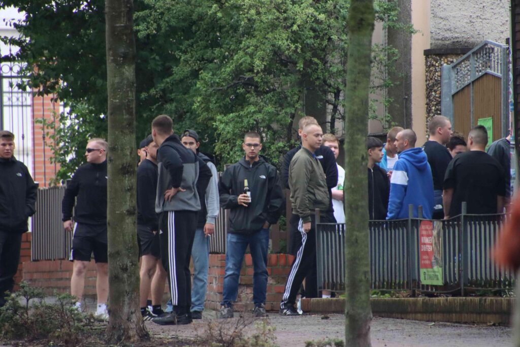 Foto: Stephanie Heide am 12. November 2025 in Köthen: rechte Störer in der Baasdorfer Straße, die jedoch nicht in die Nähe des CSD gelangten