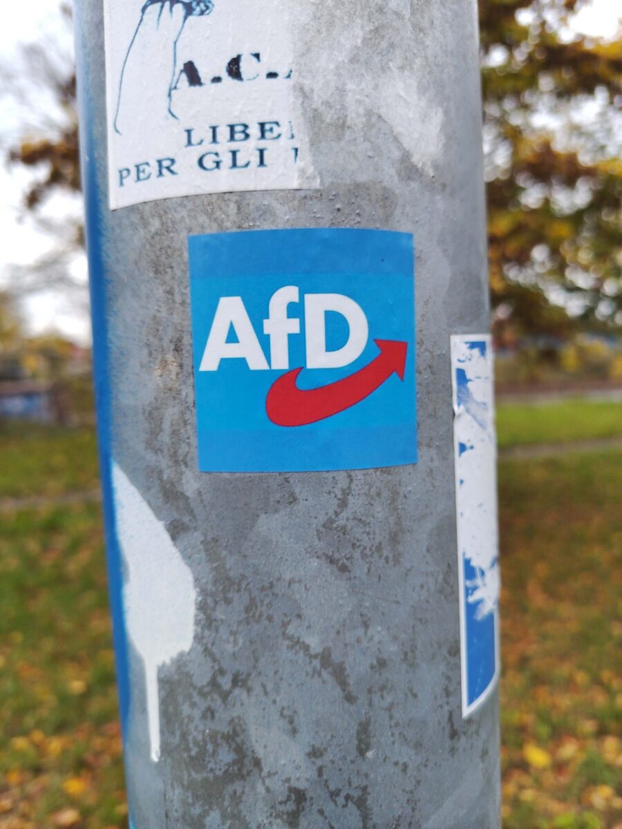 An einer Laterne in der Akener Hafenstraße wird ein Aufkleber mit dem Parteilogo der AfD dokumentiert. Positive Bekenntnisse zur in Sachsen-Anhalt vom hiesigen Verfassungsschutz als „gesichert rechtsextreme Bestrebung“ eingestuften Partei werden in der Kleinstadt an der Elbe immer wieder festgestellt (mehr dazu hier…und hier… und hier… und hier…) und dass, obwohl Aken einer der wenigen Gebietskörperschaften im Land ist, in der die AfD nicht im Kommunalparlament sitzt.