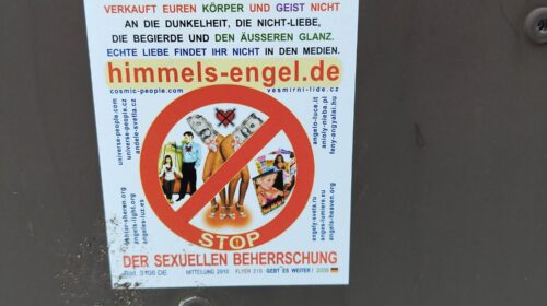 In der Akener Friedensstraße wird an einem Trafohaus ein Aufkleber mit der Aufschrift „Stop der sexuellen Beherrschung“ festgestellt. Die darauf ausgewiesene Homepage verweist auf die verschwörungsideologische und esoterische Gruppierung „Himmelsengel“. Dort finden sich in mehreren Sprachen krudeste Verschwörungserzählungen, u. a. von den „Echsenmenschen“. Zudem wird von einem „Großen Plan alle Menschen zu chippen“ fantasiert. Insbesondere die Verschwörungserzählung von den „Echsenmenschen“, auch Reptiloiden genannt, ist strukturell antisemitisch.