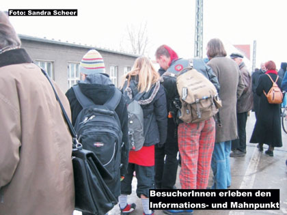 Die Vertreterin der Forschungsgruppe, Antje Tietz, brachte in ihrer Rede das ganze Ausmaß des Massenmordes zum Ausdruck. Mit dem Giftgas Zyklon B, dass in der Dessauer Zuckerraffinerie im Auftrag der Deutschen Gesellschaft für Schädlingsbekämpfung (Degesch) produziert wurde, seien in den Konzentrations- und Vernichtungslagern Auschwitz, Majdanek, Sachsenhausen, Ravensbrück, Stutthof, Mauthausen und Neuengamme in den Jahren 1941 bis 1945 Millionen Menschen aus ganz Europa, Jüdinnen und Juden, Sinti und Roma, sowjetische Kriegsgefangene, politische und andere Verfolgte des Naziregimes ermordet wurden. In eindringlichen Worten erinnerte Tietz an die historische Verantwortung, thematisierte den erstarkten Rechtsextremismus und sprach sich klar gegen die Konjunktur einen deutschen Opfermythos aus: „Diejenigen, die Verantwortung für diesen organisierten Massenmord in den Konzentrationslagern, für die Opfer des von Deutschland ausgehenden Weltkrieges und letztlich für die Zerstörung Deutschlands und auch Dessaus tragen, leben heute größtenteils nicht mehr. Heutige Generationen tragen dafür keine Verantwortung. Aber sie - wir- tragen das Erbe. Wir dürfen nicht dulden, dass heute wieder ein deutscher Opfermythos aufgebaut wird im Gedenken, auch am 7. März, wenn der Zerstörung Dessaus gedacht wird. Denn oft wird die Ursache dieser Zerstörung, der von Deutschland ausgegangene Eroberungskrieg, fast vollständig ausgeblendet. Und wir dürfen nicht wegschauen und schweigen, wenn sich heute Rechtsextremismus, Rassismus und Antisemitismus bis in die so genannte Mitte der Gesellschaft ausbreiten, wenn Nazis wieder vermehrt in die Parlamente einziehen und somit sogar finanziell mit Hilfe unserer Steuergelder unterstützt werden.“ Zum Abschluss brachte Antje Tietz noch die Hoffnung zum Ausdruck, dass den Informations- und Mahnpunkt möglichst viele DessauerInnen und BesucherInnen der Stadt aufsuchen werden.