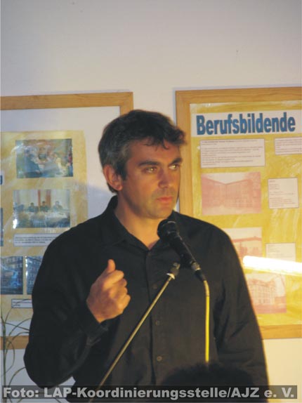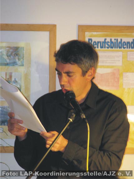 Der nach Lenin wohl bekannteste Russe hierzulande eröffnet mit seiner Lesung an diesem Abend die Wanderausstellung „anders? Cool!“. Die Exposition (mehr dazu hier...), die von der Stiftung Evangelische Jugendhilfe nach Dessau geholt wurde und vom Lokalen Aktionsplan für Demokratie und Toleranz (mehr dazu hier...) gefördert wird, informiert über die Lebenswirklichkeit und Alltagserfahrungen von nach Deutschland zugewanderten Jugendlichen.