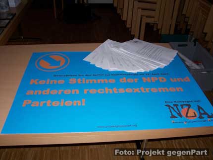 Geben Sie ihre Stimme den demokratischen Parteien und verhindern Sie somit den Einzug der NPD und anderer rechtsextremer Parteien in die Kommunalparlamente!