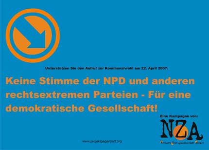 Das Netzwerk Zivilgesellschaft Anhalt hat am 09. März 2007 offiziell die Kampagne „Keine Stimme der NPD und anderen rechtsextremen Parteien – Für eine demokratische Gesellschaft!“ gestartet.