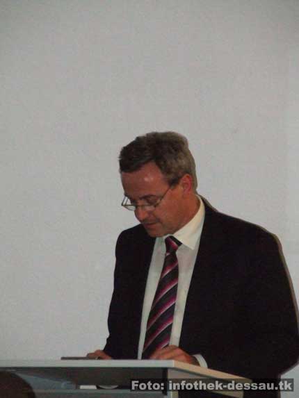 Landrat Ulrich Gerstner beginnt seine Rede mit einer kleinen Geschichtsstunde: „Sie haben zum Glück noch keinen Führer“. Damit spielt der SPD-Politiker auf - aus seiner Sicht unpassende – Vergleiche zwischen der Weimarer Republik und dem bundesrepublikanischen Rechtsextremismus an. Schon ein flüchtiger Blick in die Tageszeitung beweise, wie virulent das Problem rechter Straf- und Gewalttaten in Sachsen-Anhalt sei. Gerstner beschwichtigt nicht und zählt auf: ein Brandanschlag in Sangerhausen, ein Neonaziaufmarsch in Magdeburg und ein aktiver JN-Stützpunkt (Junge Nationaldemokraten; Jugendorganisation der NPD) in Bernburg.