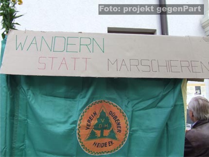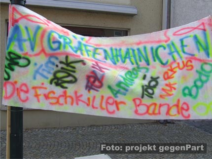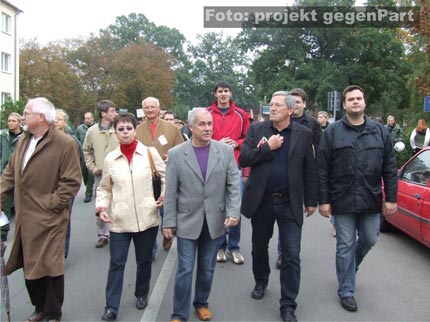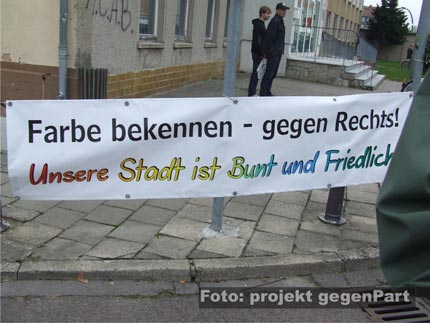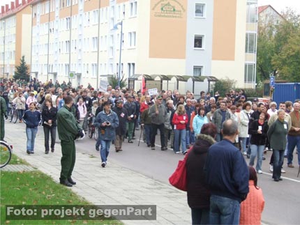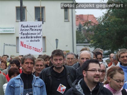 Während die NPD-Anhänger und die mit ihnen eng verbundenen gewalttätigen Neonazis aus den Kameradschaften am vergangenen Samstag zu Hause bleiben mussten, machte in Gräfenhainichen fast alles mobil, was laufen konnte (mehr dazu hier...): Vom Ortsbürgermeister Harry Rußbült, dem zuständigen Landrat Jürgen Dannenberg (beide Die LINKE), Bundes- und Landtagsabgeordnete und der Jungen Union, über den örtlichen Sportverein VFL Gräfenhainichen, die Freiwillige Feuerwehr, den lokalen Kirchenvertretern, Schulen, dem Angelverein und den Freunden der Kaninchenzucht, bis hin zum Netzwerk Zivilgesellschaft Anhalt (mehr dazu hier...), dem Mobilen Beratungsteam gegen Rechtsextremismus (mehr dazu hier...) und der Antifa.