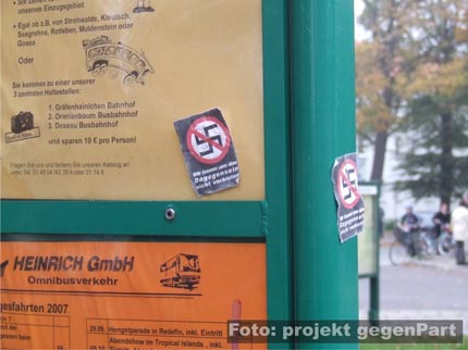 Gräfenhainichen ist eher ein beschaulicher Ort. Die 8000-Seelen-Gemeinde im Landkreis Wittenberg liegt umrahmt von ausgedehnten Wäldern und dem Tourismusmagnet Ferropolis (mehr dazu hier...) in der Dübener Heide. Ein idyllisch-provinzieller Fleck Sachsen-Anhalt, der in der Vergangenheit höchstens dafür überregional bekannt war, dass sich auf den Strassen viele nichtrechte Jugendliche tummeln, die sich der jugendkulturellen Hardcore-Szene zugehörig fühlen. Also eher kein Ort, an dem sich der organisierter Rechtsextremismus breit machen konnte und rechte Schläger Minderheiten terrorisieren? Diese erfreuliche Bestandsaufnahme stimmt nur noch zum Teil. Die Idylle hat seit einiger Zeit Risse bekommen und die organisiert verfasste rechte Szene versucht zusehens, in der Heidestadt Fuß zu fassen (mehr dazu hier...). Auch wenn Gräfenhainichen beileibe noch kein Leuchtturm rechter Gewalt und neonazistischer Aktivitäten in Sachsen-Anhalt ist, haben bei einigen Akteuren in der Stadt - und dies ist im Osten der Republik immer noch nicht selbstverständlich – die Alarmglocken geläutet. Sicherlich wurde die lokale Zivilgesellschaft vor allem durch eins aufgerüttelt: Eine geplanter NPD-Aufmarsch am 06. Oktober 2007.