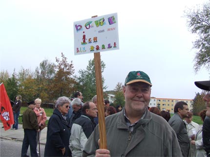 Fast 500 Menschen versammeln sich bei zunächst schmuddligen Herbstwetter am Morgen auf dem Bahnhofsvorplatz, um unter dem Motto: "Bunt statt Braun - gemeinsam der NPD entgegenstellen!" durch die Strassen der Stadt zu ziehen. Bevor es so richtig los geht, steht die obligatorische Auftaktkundgebung auf dem Programm. „Wir haben eine Menge Glück, die NPD-Demo ist verboten“, sagt Ulf Kühnemund mit heiserer Stimme ins Mikro. Der Gräfenhainicher Unternehmer hat die Demonstration angemeldet und die demokratischen Aktivitäten im Vorfeld maßgeblich koordiniert. Seine Hauptbotschaft dröhnt an diesem Tag gleich mehrmals aus den Lautsprecherboxen: „Gräfenhainichen ist bunt, nicht braun!“. Während eine regionale Hip Hop-Band ihre Statements, die auf den eher gesetzteren Teil des Protestpublikums manchmal schon etwas gewöhnungsbedürftig wirkt, auf den Platzt rappt, macht sich Bürgermeister Harry Rußbült für seinen ersten Auftritt an diesem Tag fertig. Sein Resümee fällt genauso knapp wie eindeutig aus: „Es ist gut zu sehen, dass Gräfenhainichen einer braunen Flut entgegentreten kann“.