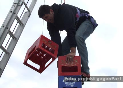 Ulf Kühnemund vom Aktionsbündnis bei einer waghalsigen Hängepartie