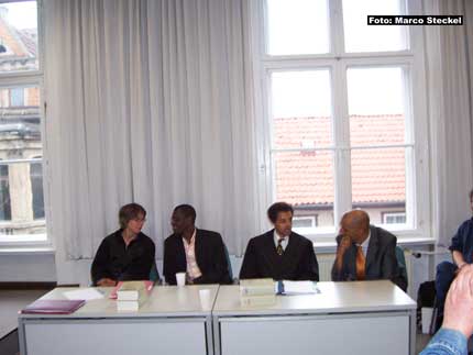 Die Beratungsstelle für Opfer rechter Gewalttaten, das Projekt GegenPart und das Dessauer Antidiskriminierungsbüro reagierten prompt und stellten am 22. April 2005 Strafanzeige wegen Volksverhetzung, Verunglimpfung des Andenkens Verstorbener und übler Nachrede. (mehr dazu hier...). Der Beauftragte der Familie Oury Jalloh in Deutschland, Mouctar Bah von der Deutsch-Afrikanischen Initiative in Dessau, sowie Tahir Della fungierten in dem Verfahren als Nebenkläger.