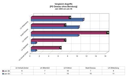Vergleiche der Angriffe (PD Dessau ohne Bermburg) Jahr 2005 mit Jahr 2006
