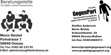 Die Opferberatungsstelle Anhalt/Bitterfeld/Wittenberg und das Dessauer Projekt gegenPart teilen nicht die Meinung von Kritikern des Ausschusses, dass dieser das Ansehen der Polizei nachhaltig schädigen könnte. Die der Öffentlichkeit bekannt gewordenen Vorgänge der letzten Monate macht vielmehr eine transparente und vollständige Aufklärung unverzichtbar. Die Ausschussergebnisse können aus der Sicht der Dessauer Rechtsextremismusexperten auch dazu geeignet sein in Zukunft zu verhindern, dass die Polizei zivilgesellschaftliches Engagement gegen Rechtsextremismus, wie im zu untersuchenden „Fall Bergwitz“ geschehen, kriminalisiert und damit behindert. Vielmehr muss es der Polizei darum gehen, im Kampf gegen Rechts so viele gesellschaftliche Partner wie möglich zu aktivieren.