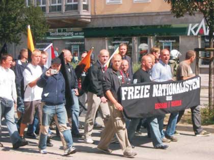 Zum Auftakt des Wahlkampfes (Neuwahlen des Bundestages) der neonazistischen Nationaldemokratischen Partei Deutschlands (NPD) in Sachsen-Anhalt, fanden gleich zwei rechtsextreme Aufmärsche in der Landeshauptstadt statt. Während die eine Demo unter dem rassistischen Motto: "Abschiebung statt Integration" stand, marschierten die Neonazis beim zweiten Aufmarsch unter dem sozialpopulistischen Slogan: "Kampf gegen Sozialabbau". An beiden Veranstaltung zusammen, nahmen insgesamt 160 Rechtsextremisten teil. Unter den Aufzugsteilnehmern konnten auch 5 Anhänger und Mitglieder der hiesigen Neonazikameradschaft "Freie Nationalisten Dessau/Anhalt" festgestellt werden.