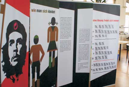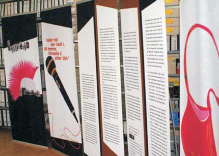 Ab sofort kann die Ausstellung beim ASP ausgeliehen werden. Verfügbar sind eine großformatige (15 Tafeln je 2 Meter hoch, 0.6 Meter breit, Stoffbahnen inklusive Aufsteller) und eine kleinformatige (15 Stofftafeln im A1-Format mit Wandbefestigung) Version.