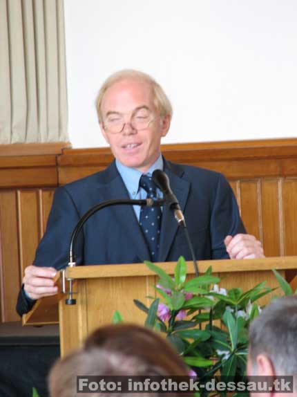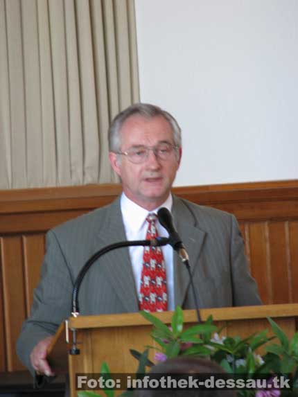 Ein bemerkenswert substantielles und geradliniges Grußwort hielt Rüdiger Erben, Staatssekretär im Innenministerium Sachsen-Anhalts. „Eine offensive Auseinandersetzung mit Fremdenfeindlichkeit und Rechtsextremismus“, mahnte er an und fand hinsichtlich der steigenden rechten Gewalt im Land klare Worte: „Damit dürfen, und damit wollen wir uns nicht abfinden“. Schonungslos konstatierte Erben, das die rechtsextreme NPD in einigen Teilen Sachsen-Anhalts durchaus erfolgreich ist und ihr es teilweise gelungen sei, in die Mitte der Gesellschaft hineinzuwirken. Fremdenfeindlichkeit und Rassismus in Sachsen-Anhalt, einem Land fast ohne Ausländer, zeige, so der Staatssekretär ein abgewandeltes Marx-Zitat benutzend, „dass das Sein nicht immer das Bewusstsein bestimmt“. „Der Antisemitismus ist ein Gerücht von den Juden“, schob er Adorno noch hinter her.