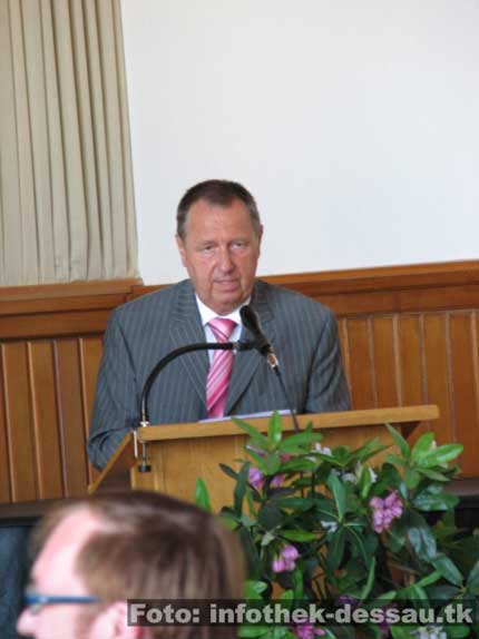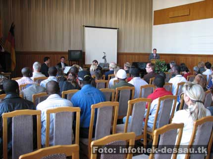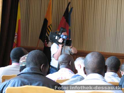 Der Oberbürgermeister der Stadt Dessau, Hans-Georg Otto, analysierte in seinem Grußwort mögliche Ursachen für Diskriminierung und rassistische Gewalt und nannte dabei die Politikverdrossenheit, die oftmals zu Apathie und einen Rückzug ins Private führen würde. Angesichts der hohen Arbeitslosenzahlen wäre eine Perspektivlosigkeit gerade unter Jugendlichen zu konstatieren. „Wenn ich etwas verändern will, muss ich selbst mit anpacken“, sagte Otto und spannte dabei einen Bogen zum Einzug der neonazistischen NPD in den Schweriner Landtag. Die Aussage des Oberbürgermeisters, dass „das Werben für Demokratie und Toleranz nicht dazu führen darf, ganze Landstriche und Städte zu rechten Zonen zu erklären“, stieß vor allem bei den Vertretern der zivilgesellschaftlichen Initiativen zum Teil auf Unverständnis. Otto hatte in diesem Zusammenhang den neonazistischen Mord an Alberto Adriano im Sommer 2000 in Dessau angesprochen.