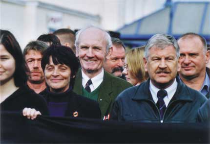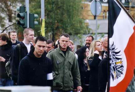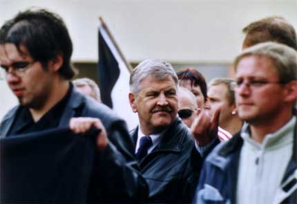 Udo Vogt (Bildmitte) ist NPD-Bundesvorsitzender und nahm an dem Neonaziaufmarsch in Bitterfeld teil