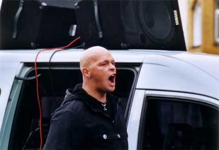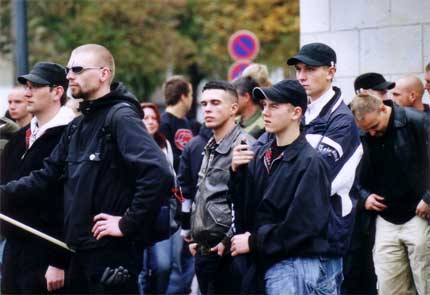 die Dessauer Neonaziaktivisten Steffen M. (dritter v. l.) und Enrico V. (zweiter v. r.)