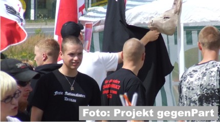 Neonaziaktivisten aus Köthen, Rene H. mitte, mit Sonnenbrille