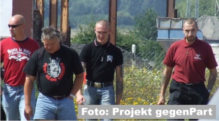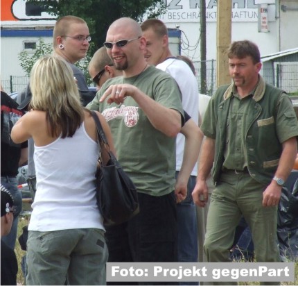 Neonaziaktivist Rene H. aus Köthen (mitte) und Andreas Köhler, NPD-Fraktionsmitglied im Kreistag Anhalt-Bitterfeld (rechts)