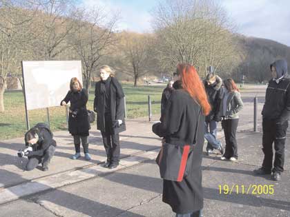 Neben der Auseinandersetzung mit dem historischen Ort informierten wir uns auch umfassend über die pädagogischen Angebote der Gedenkstätte und das Gedenken an die Opfer sechzig Jahre nach Kriegsende. Immer wieder sahen wir uns an diesem Ort mit der Frage nach der Verantwortung konfrontiert, denn das Konzentrationslager befand sich in unmittelbarer Nachbarschaft zur Stadt Nordhausen und verfügte über zahlreiche Nebenlager in und um Nordhausen. Die Häftlinge waren nicht nur sichtbar für die Bevölkerung, so mancher profitierte auch von ihnen.