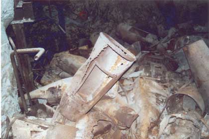 Teile der im Konzentrationslager von Häftlingen unter unmenschlichsten Bedingungen produzierten "V-Waffen"