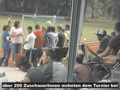 Doch auch abseits der breitensportlichen Betätigung, war jede Menge los. Der Ehrengast des Turniers, Sekou Soumah, sorgte mit seinen artistischen Ballzauber für den ein oder anderen Hingucker. Insgesamt 24 Spiele hat der Sportler mit niederländischen Pass für die Nationalmannschaft Guineas absolviert. Bis vor kurzem kickte er zudem beim Holländischen Erstligisten Tilburg, bis ihn eine Knieverletzung zur Aufgabe zwang. Die offizielle Aftershowparty zum Turnier fand am Abend im Alternativen Jugendzentrum statt. Ein bunter musikalischer Schüttelmix aus afrikanischen Klängen und Hip Hop-Sound ließ die Gäste nicht nur bis in den Morgen tanzen, sondern brachte zu dem mehrere Hundert Euro ein. Diese Erlöse sollen den Angehörigen Oury Jallohs zu Gute kommen.