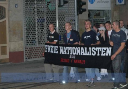 An einem Neonaziaufmarsch unter dem Motto "Tag des Arbeiteraufstandes - Gedenkmarsch in Halle" beteiligten sich ca. 150 Rechtsextremisten. Die Neonazis reisten vorwiegend aus den Bundesländern Sachsen und Sachsen-Anhalt an. Unter den Aufzugsteilnehmern, konnten nachweislich die Neonazis Enrico V. und Alexander W. aus der Dessauer Neonazikameradschaft "Freie Nationalisten - Dessau/Anhalt", siehe auch Eintrag vom 12. März 2005, identifiziert werden. Darüber hinaus nahm auch der verurteilte Rechtsextremist D. Decker aus dem Landkreis Bitterfeld an dem Aufzug teil. Insgesamt beteiligten sich ungefähr 10 Rechtsextremisten aus Dessau an dem Aufmarsch. Engagierte GegendemonstrantInnen verhinderten die geplanten Route zum ehemaligen NS-Gefängnis "Roter Ochse".