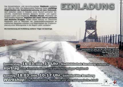 Samstag, 18.03.2006 10-18 Uhr Gedenkstätte Bernburg Workshop Die Gedenkstätte Majdanek und ihre pädagogische Arbeit