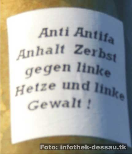Aufkleber der neonazistischen und militanten "Anti-Antifa" in Bergwitz